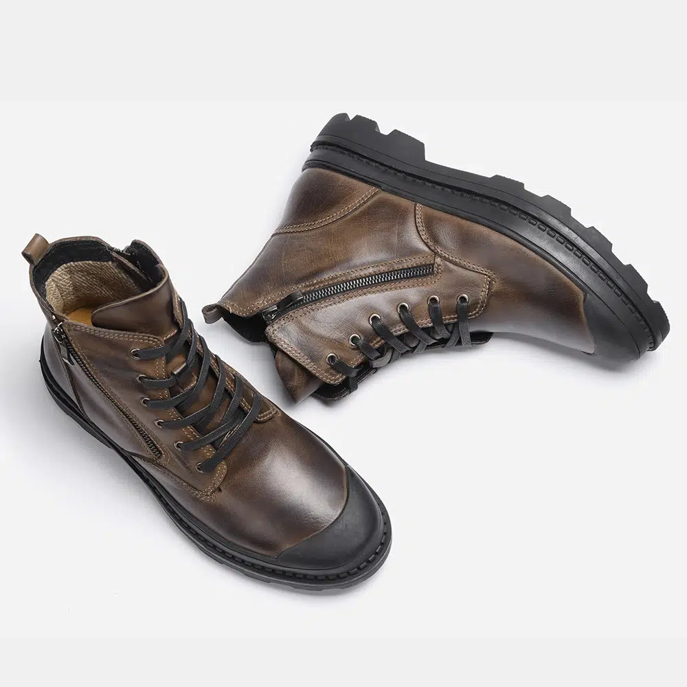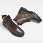 Explorez le charme intemporel des bottes en cuir naturel, robustes et élégantes, parfaites pour les aventuriers modernes. Leur fabrication artisanale garantit une qualité exceptionnelle, tandis que la semelle en caoutchouc offre une adhérence et un confort incomparables, même sur les surfaces les plus difficiles. Grâce à leur style rétro, ces bottes s’associent facilement à toutes vos tenues, ajoutant une touche de sophistication à votre look. Et avec notre garantie de satisfaction et de remplacement, vous pouvez acheter en toute tranquillité. Ne manquez pas l’occasion de rehausser votre collection de chaussures avec ce mélange idéal de style et de praticité.
